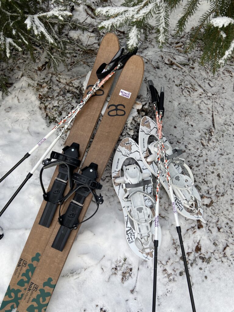 Talvikausi on täällä taas pian! Lumikenkäretkillämme on mahdollista kokeilla myös huippusuosittuja liukulumikenkiä eli eräsuksia.