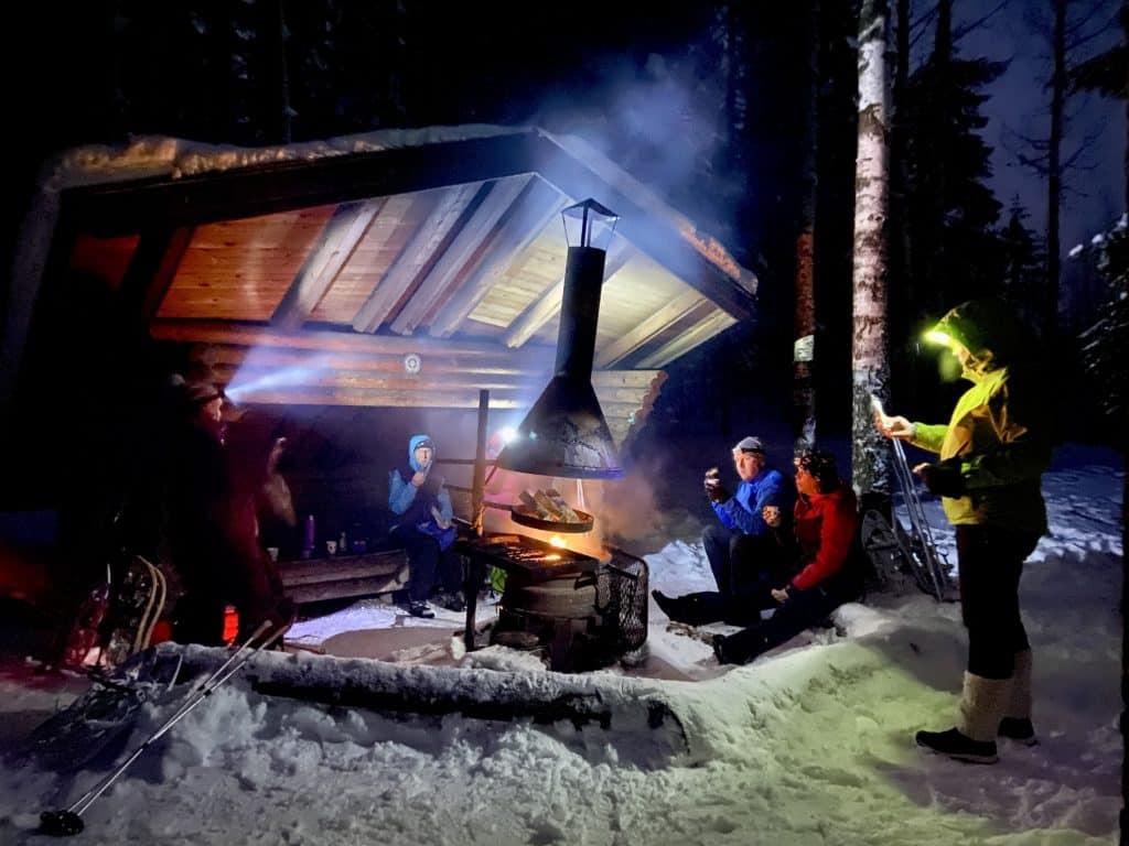 Retket onnistuvat myös ilta-aikaan otsalamppuretkinä. Varsinkin täysikuun tienoilla on upeaa seikkailla kuutamon valaisemassa luonnossa ja nauttia eväitä lämpimän höyryävän mehun kanssa laavulla.