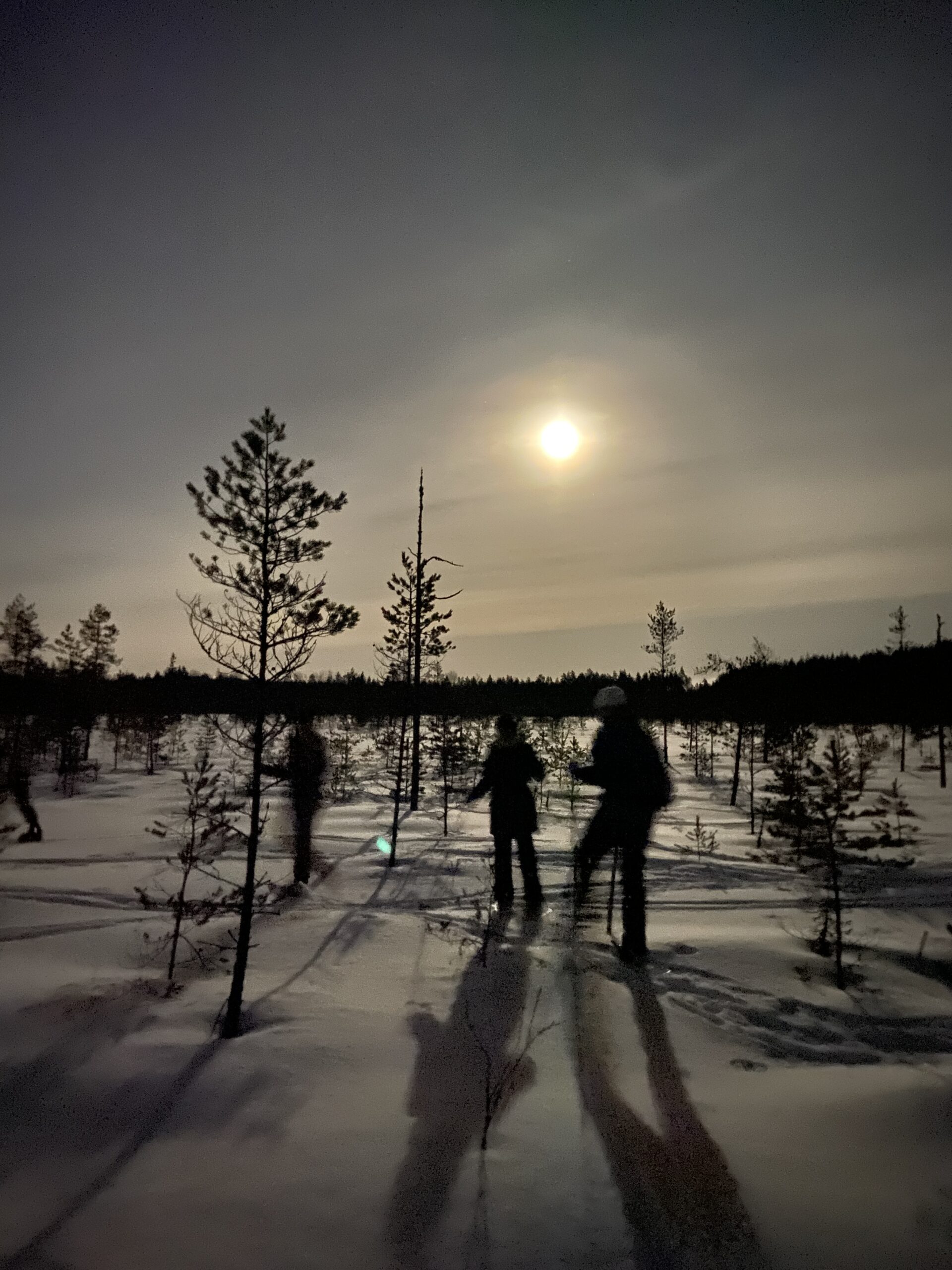 Retket onnistuvat myös ilta-aikaan otsalamppuretkinä. Varsinkin täysikuun tienoilla on upeaa seikkailla kuutamon valaisemassa luonnossa ja nauttia eväitä lämpimän höyryävän mehun kanssa laavulla.