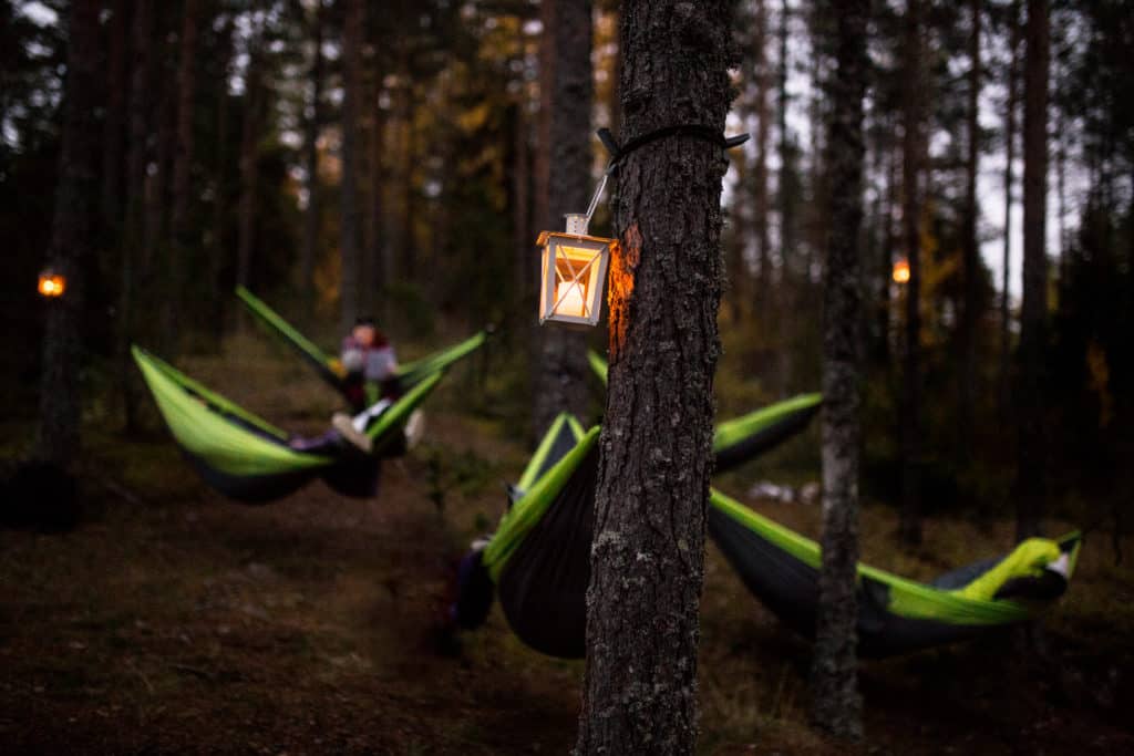 Riippumattorentoutus lyhtyjen loisteessa tilausryhmille